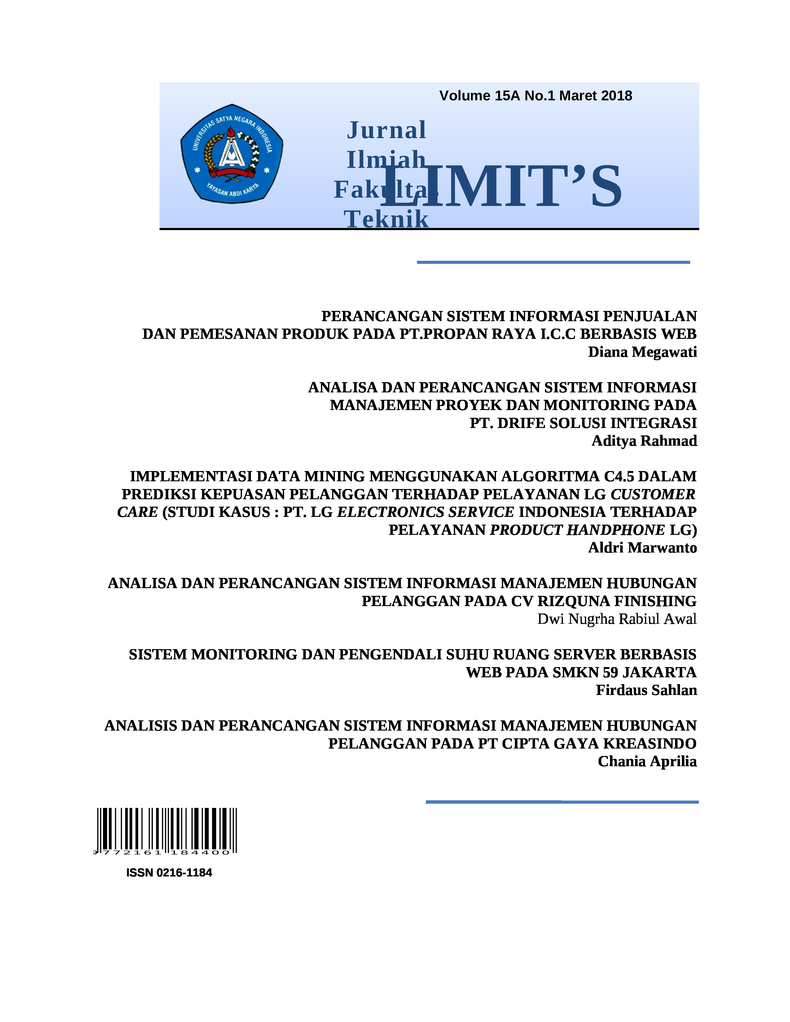 2017/2018 / Genap Vol. 15A, No. 1, Maret 2018 |