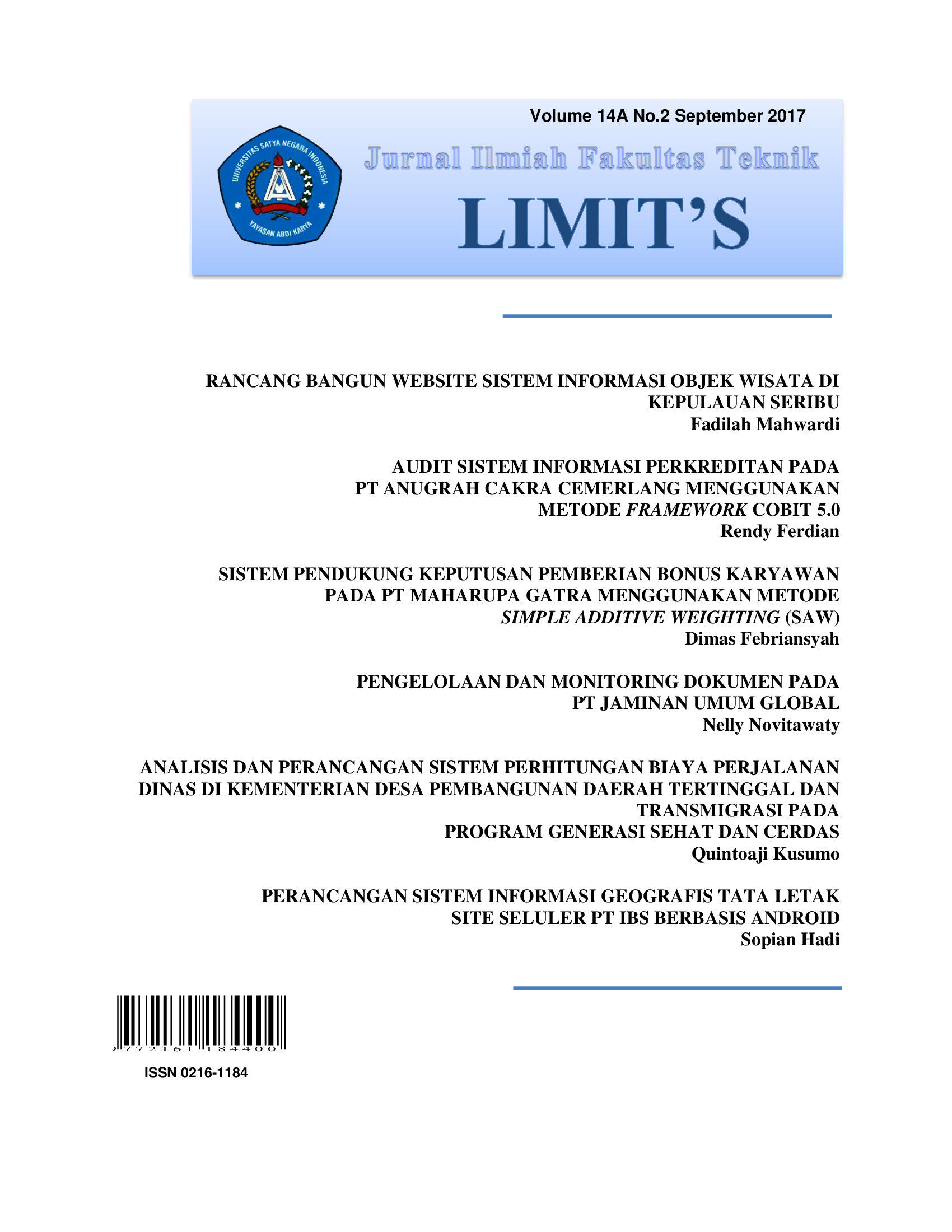 2017/2018 / Ganjil Vol. 14, No. 2, SEPTEMBER |