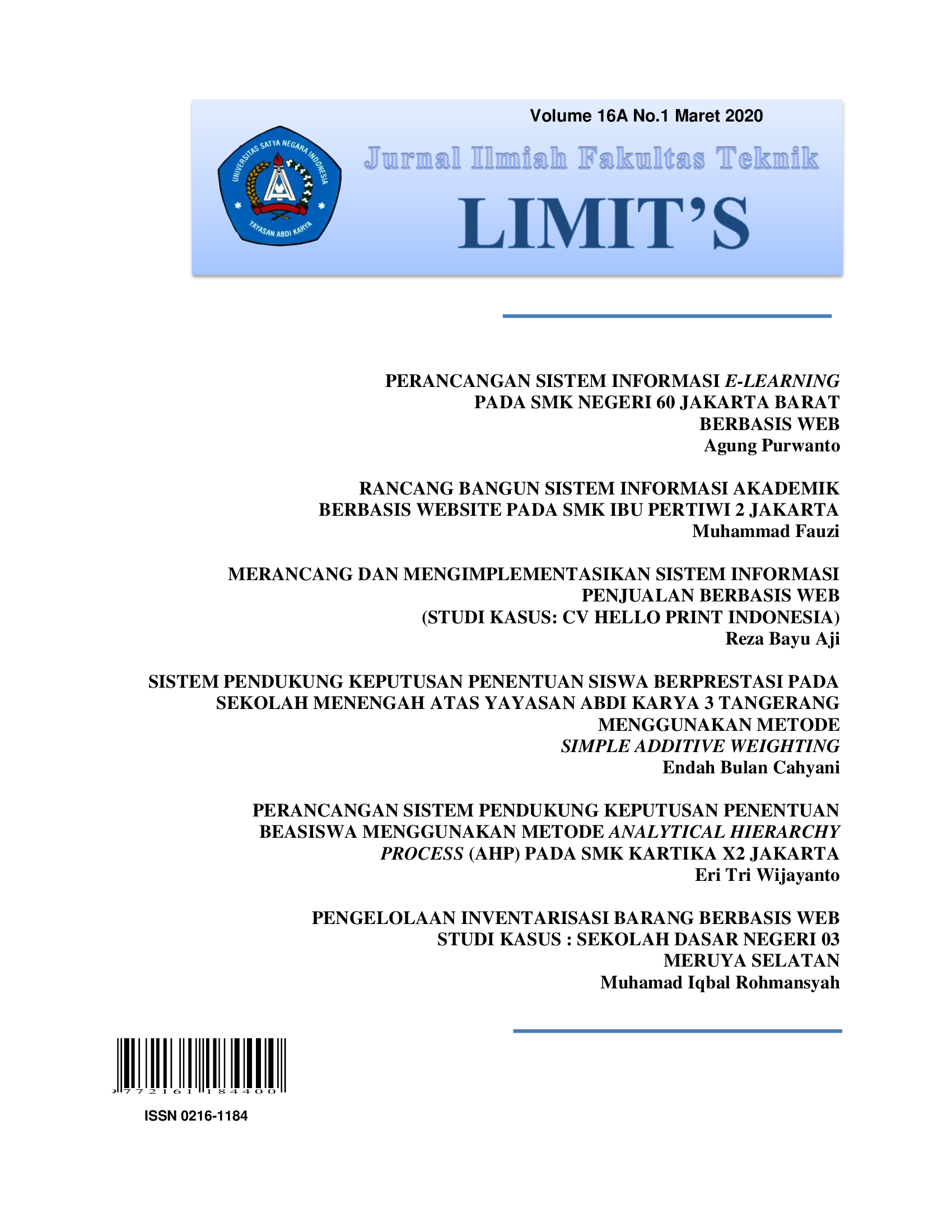2019/2020 / Genap Vol. 16A, No. 1, Maret 2020 |